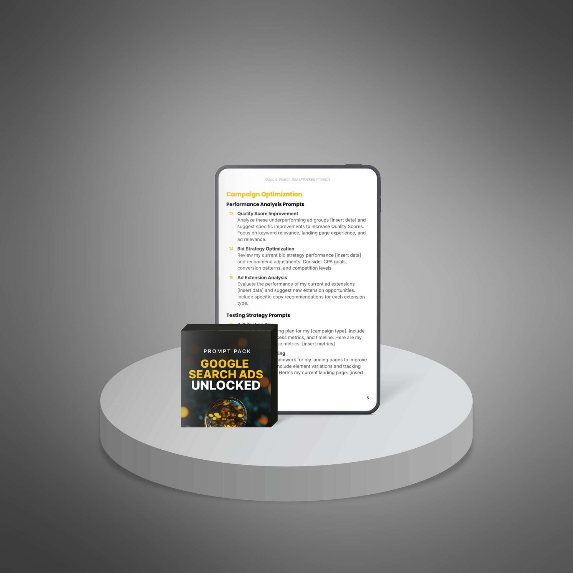 Offer your customers a comprehensive prompt pack that simplifies Google Ads management and enhances campaign performance. Whether they’re new to advertising or refining existing campaigns, this pack provides actionable insights to drive growth and maximize ROI.