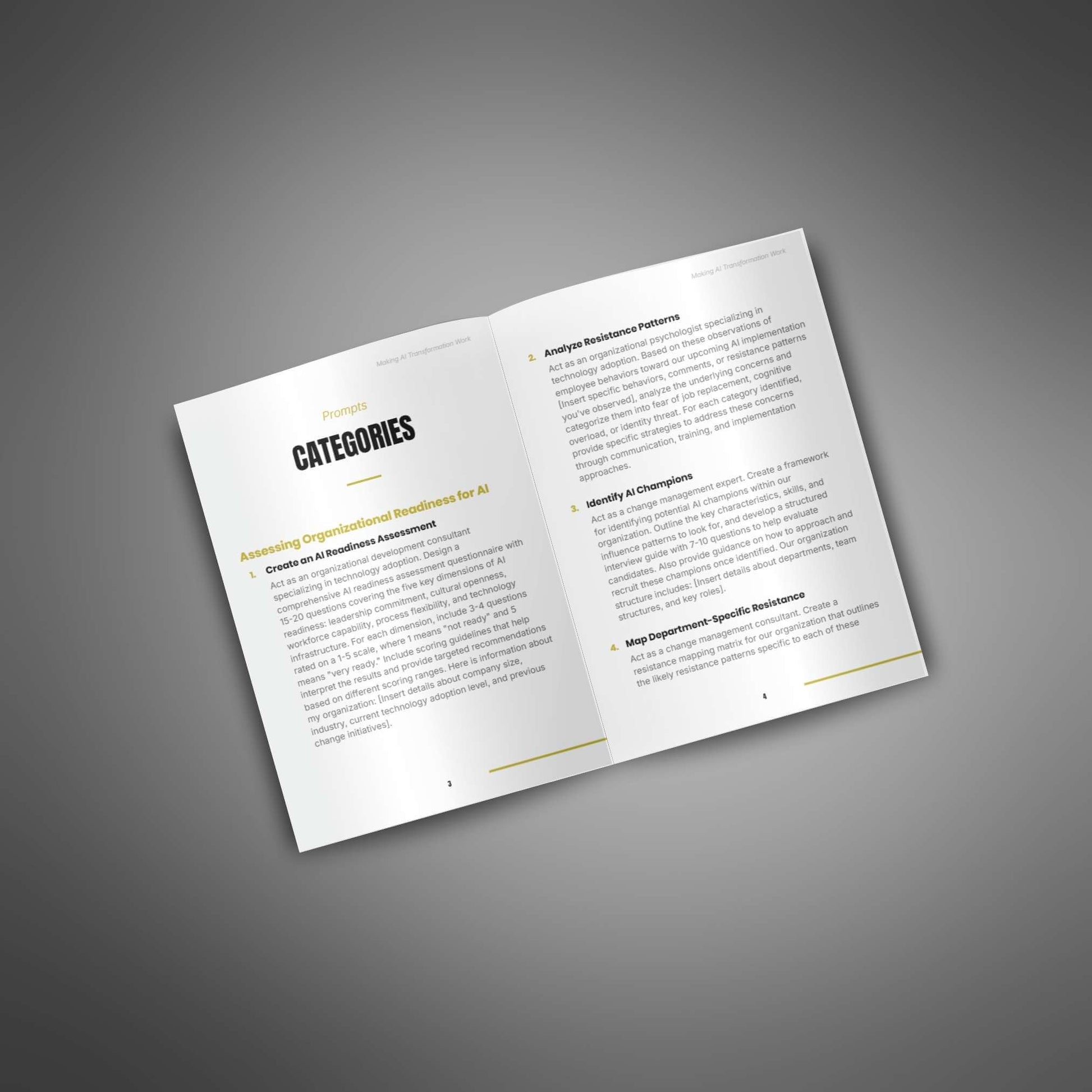 - Prompts to help leaders support AI changes and explain the benefits.