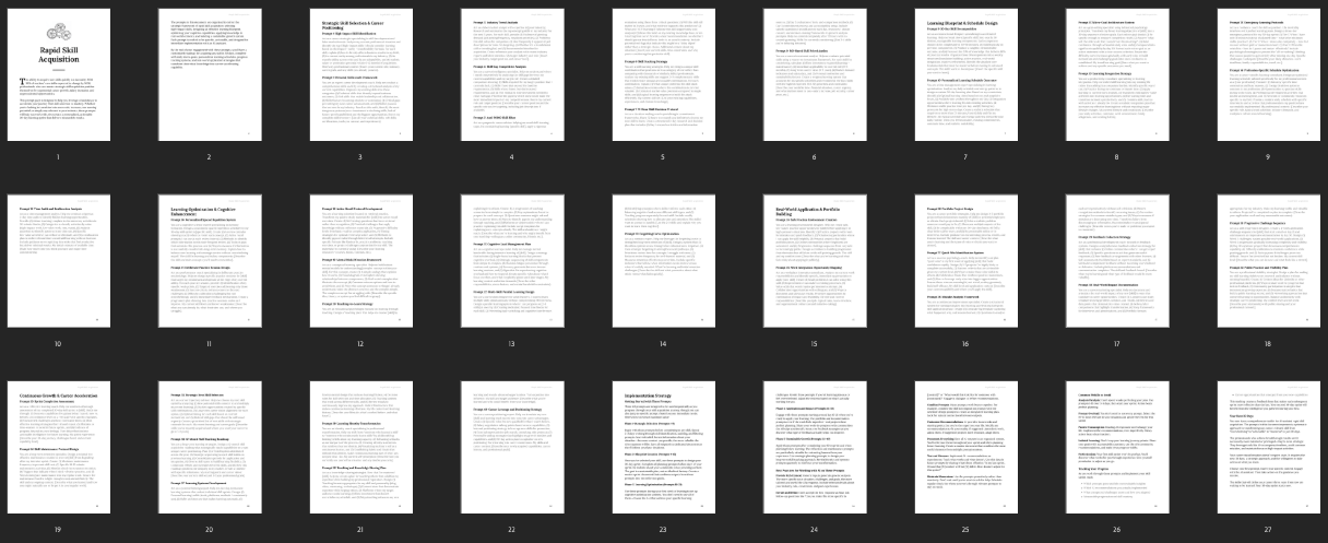 This prompt pack helps your customers use AI to learn new skills faster and more effectively. It provides structured prompts that guide them through choosing the right skill, building a clear learning plan, and practicing with purpose to reach real results in less time.