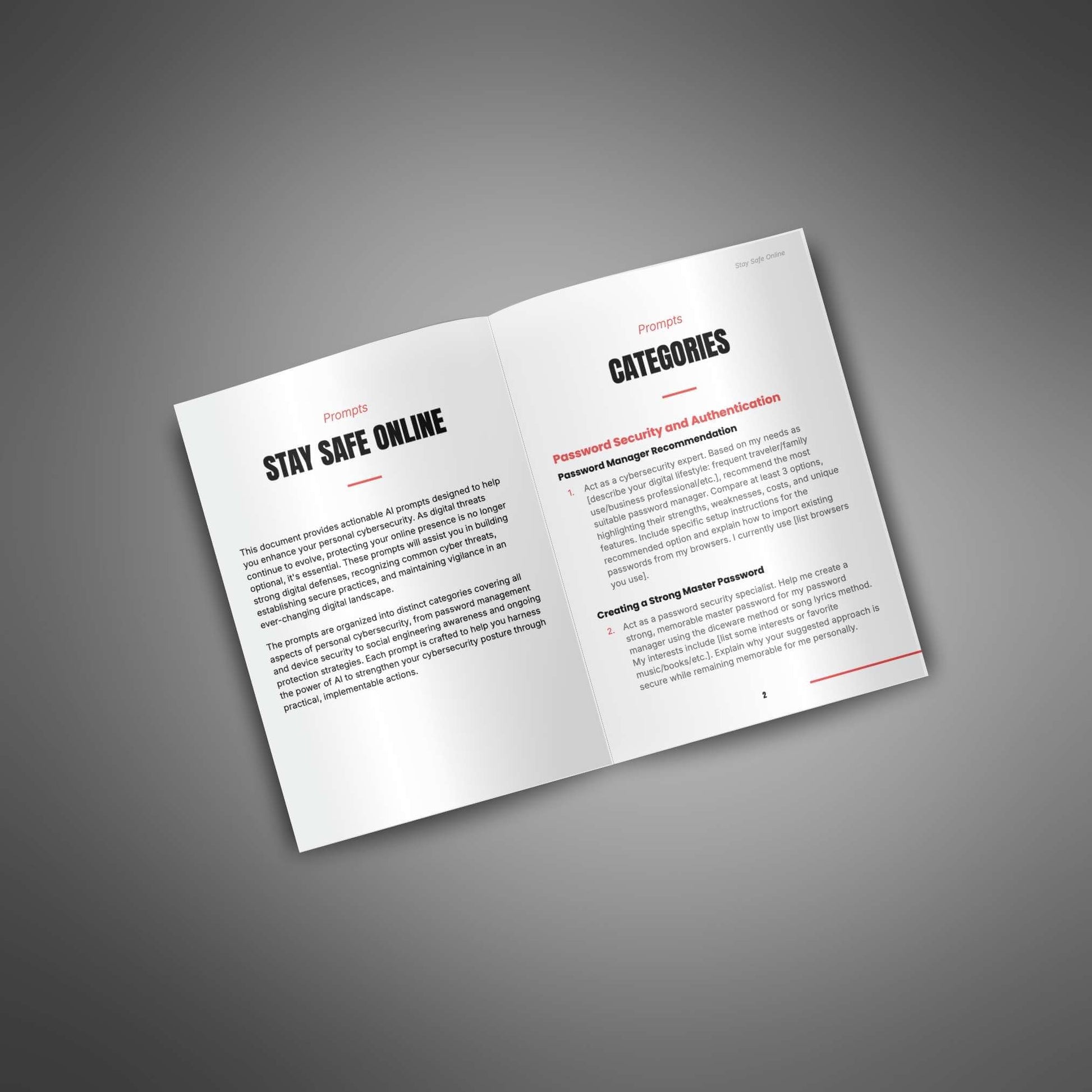 Offer your customers a powerful prompt pack that gives them simple, smart ways to protect their digital life. Whether they are just starting to think about online safety or want to improve what they already do, this pack provides clear, AI-powered prompts to help them feel confident and secure on the internet.