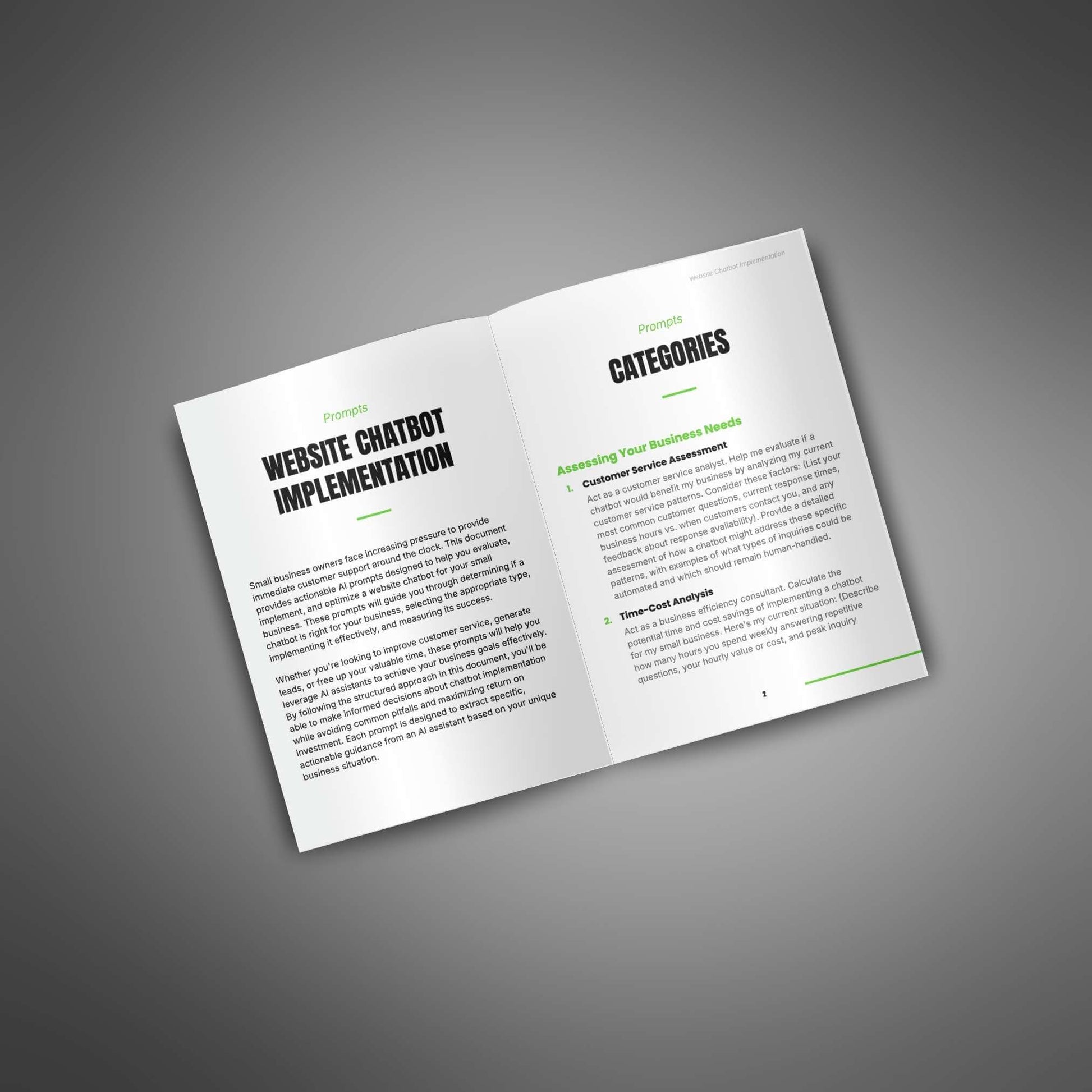 Offer your customers a powerful prompt pack that gives them everything they need to plan, build, and improve a chatbot that works for their website. Whether they’re just starting or want to upgrade what they already have, these prompts make the whole process simple, smart, and effective.